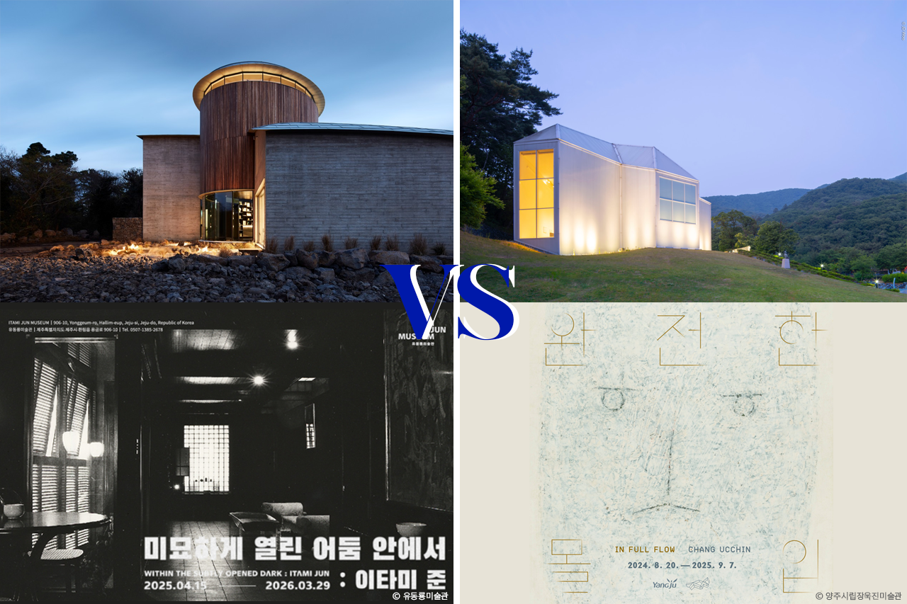 현재 진행 중인 <미묘하게 열린 어둠 안에서 : 이타미 준> 전시는 스스로를 ‘경계인’이라 정의한 건축가의 정체성과 예술 세계를 탐구해요. 글과 그림, 건축을 아우르며 경계를 초월한 그의 작업은 어디에도 속하지 않는 순수한 오리지널리티를 보여주죠.✨